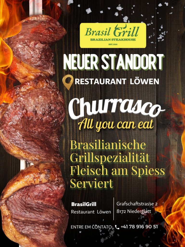 „Rodízio de Carnes“ ist die traditionelle, brasilianische Spezialität, bei der bis zu 10 verschiedene Fleischsorten am Spiess in der Churrasqueira, einem speziellen Grill, in dem die Spiesse gleichmässig drehend gegart werden. Dadurch wird das Fleisch besonders zart und saftig.